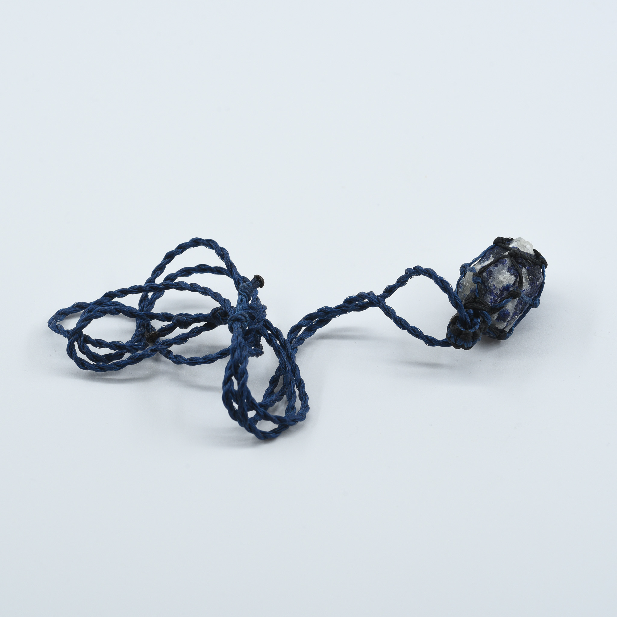 Setting: Hand-knotted blue macramé cord