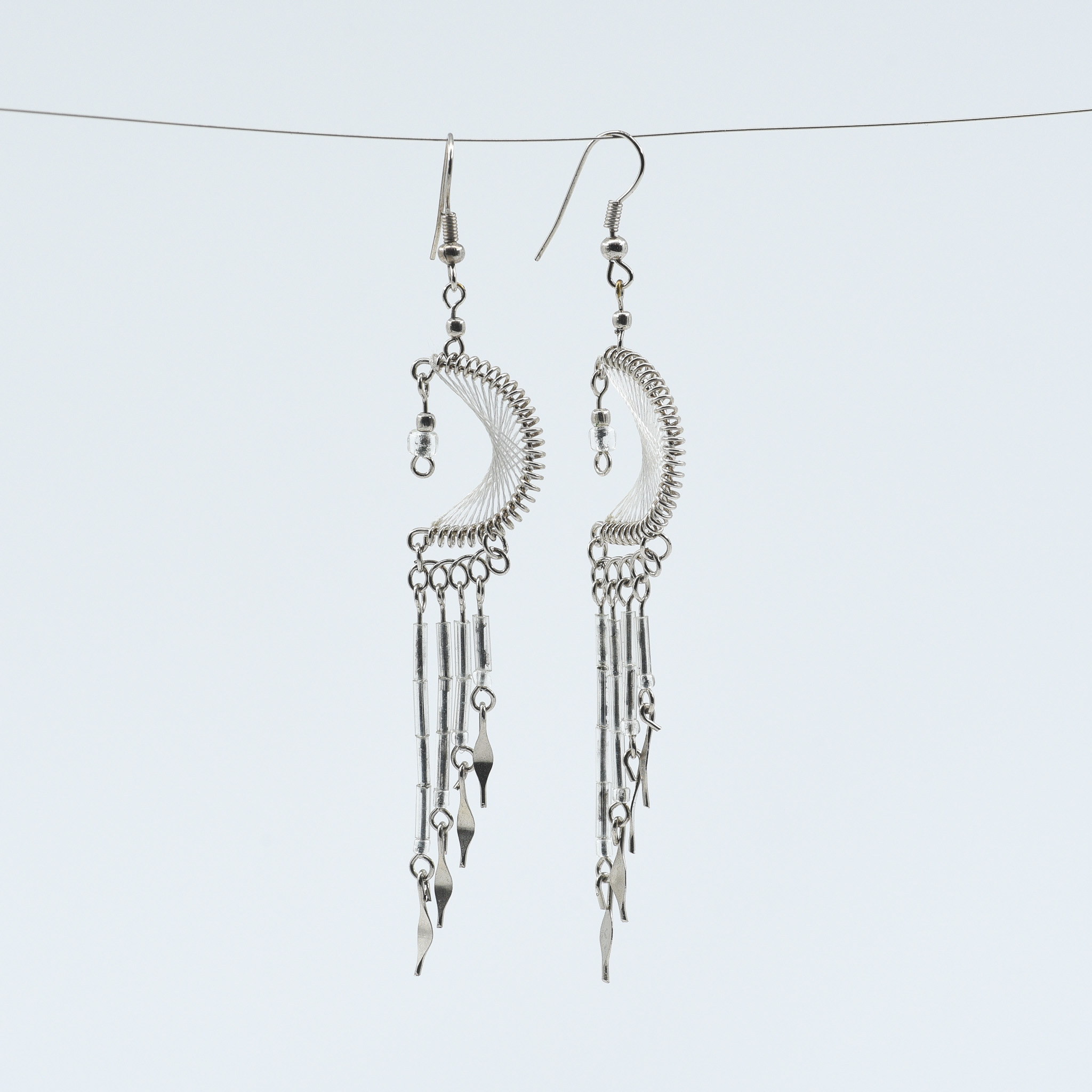 With their crisp white thread and silver glint, these earrings offer a fresh, airy elegance. A minimalist design rooted in traditional craft. Features: