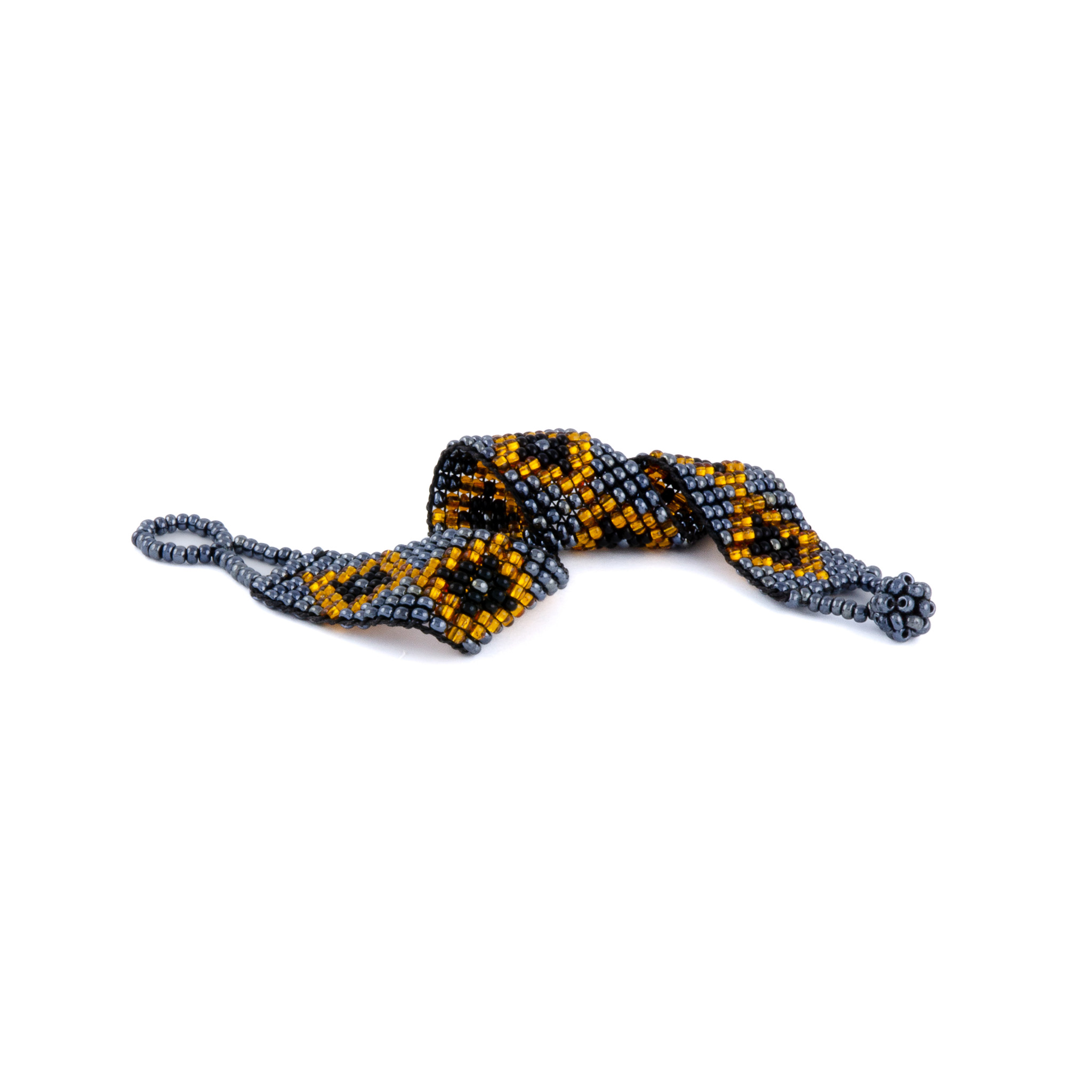 This bracelet features a condensed, spotted pattern in bronze, black, and golden tones. Inspired by the jaguar, a sacred animal in Mesoamerican tradition, it speaks of strength in subtlety.