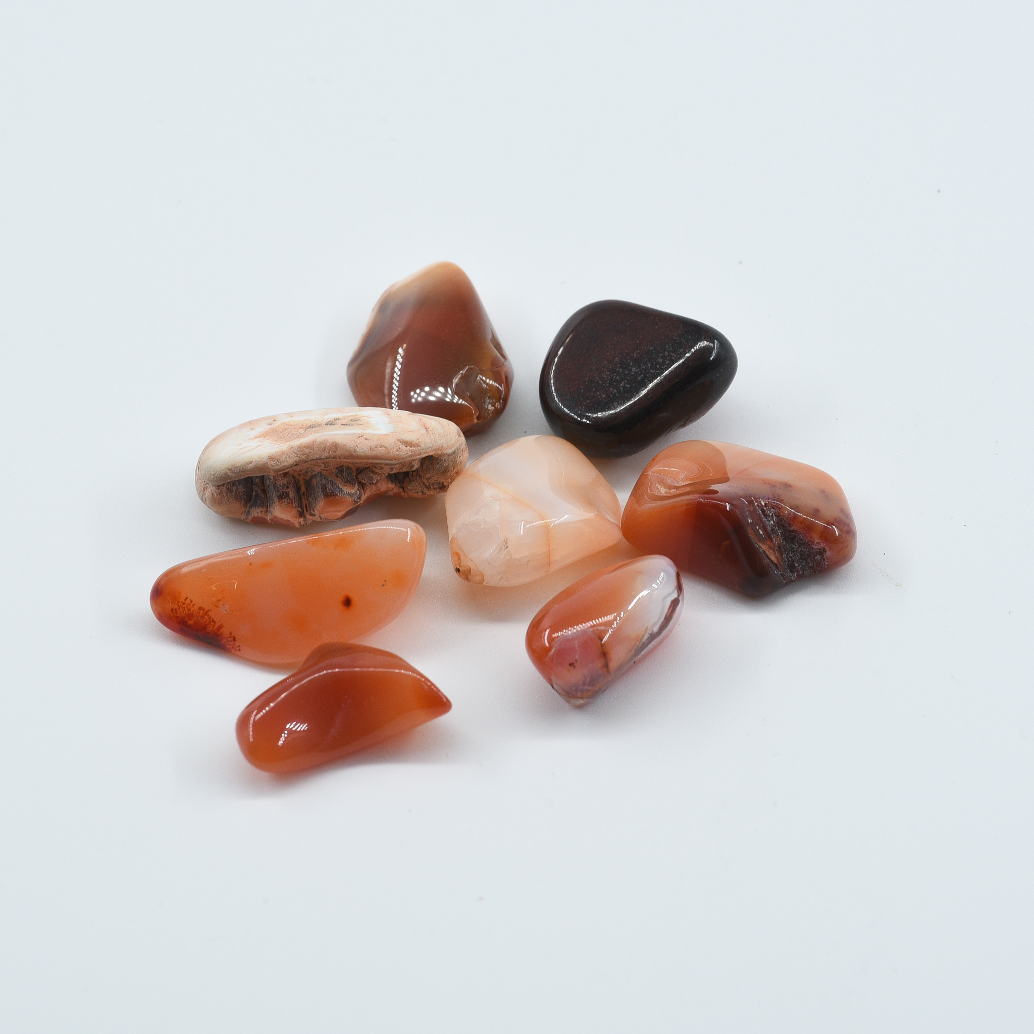 Carnelian radiates fiery vitality, boosting motivation, passion, and personal power. It is a stone of creativity, confidence, and physical strength.