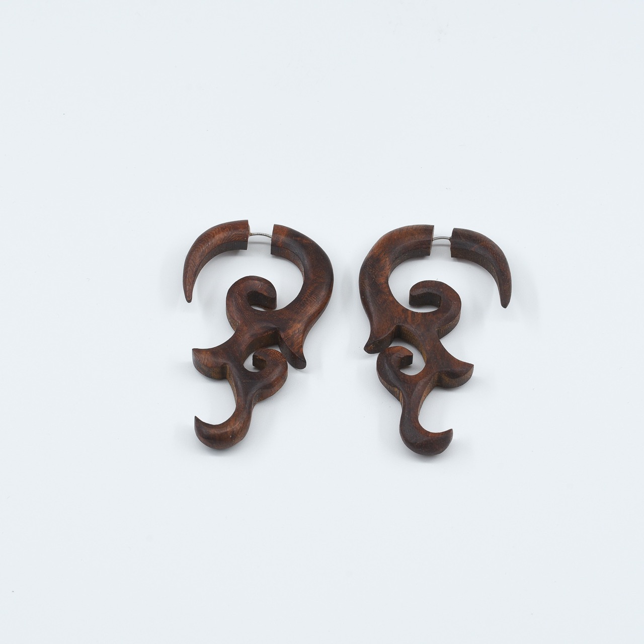 Striking and sculptural, this pair features an elegant double-curve design reminiscent of tribal horn motifs. These earrings are bold, fierce, and full of character.