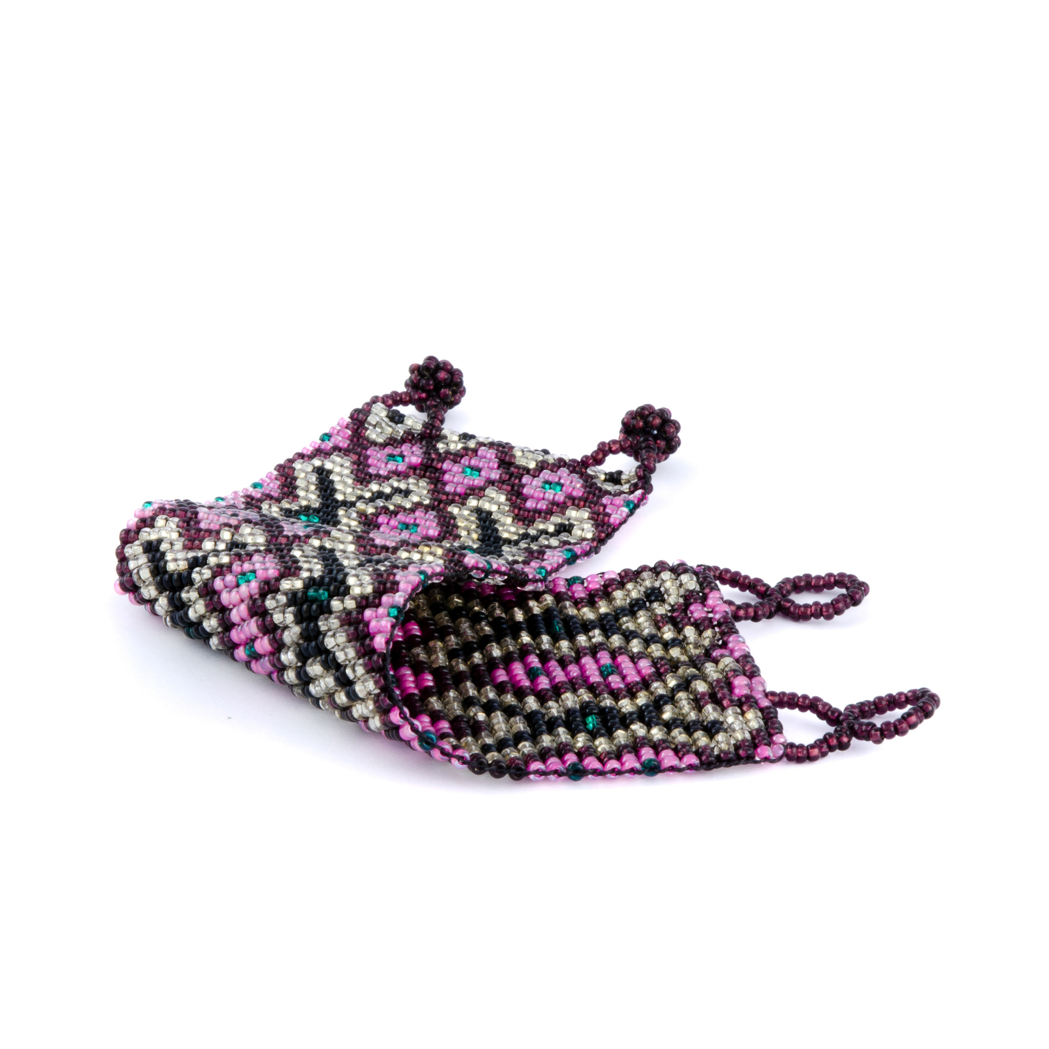 The Flor de Noche Bracelet is a refined piece of beadwork handcrafted by an Indigenous woman in Guatemala, whose knowledge of color, symmetry, and symbolism turns each piece into a meaningful creation. The bracelet features a harmonious geometric-floral pattern in soft pink, grey, and black—like flowers blooming under the night sky.