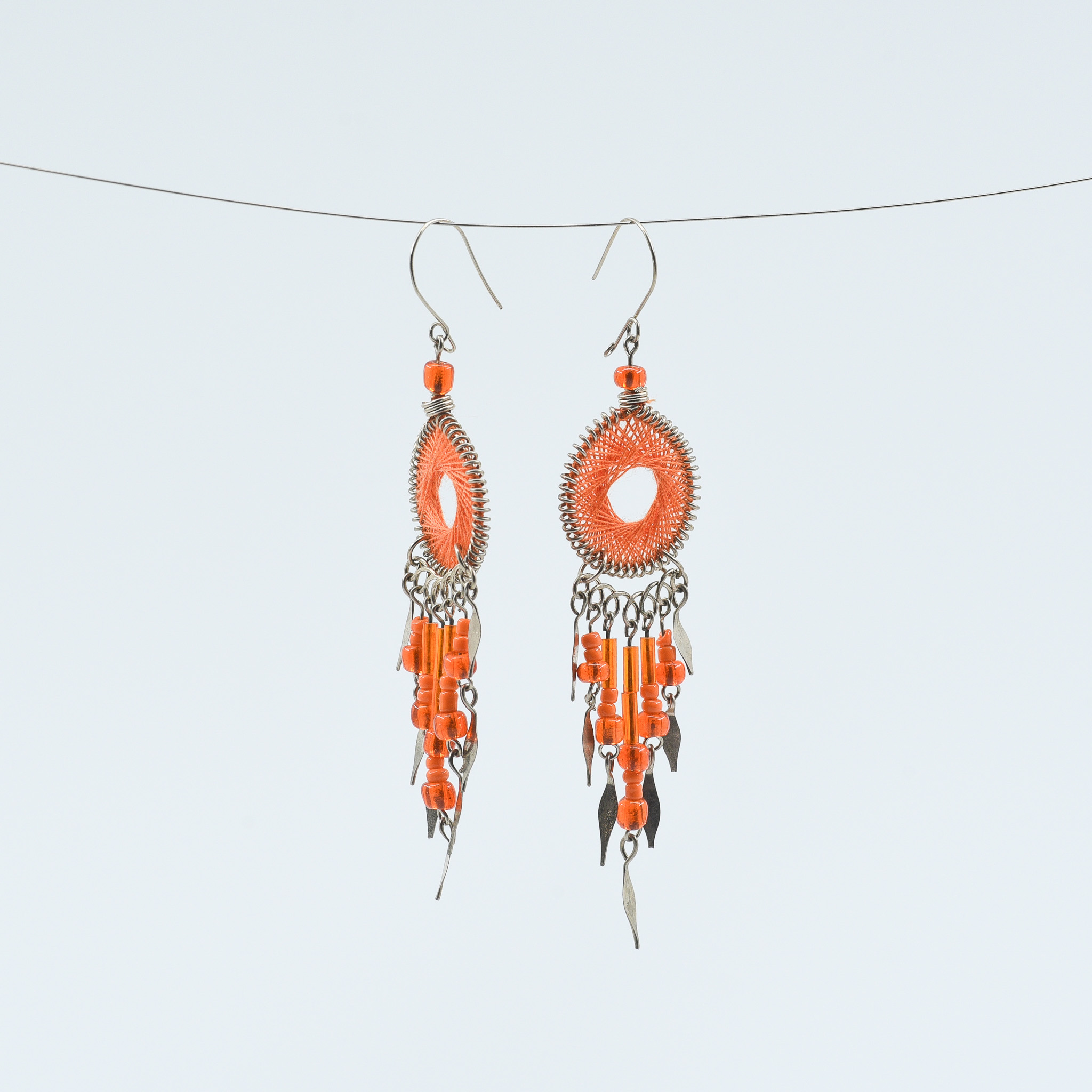 Materials: Orange thread, vibrant beads, sterling silver hooks