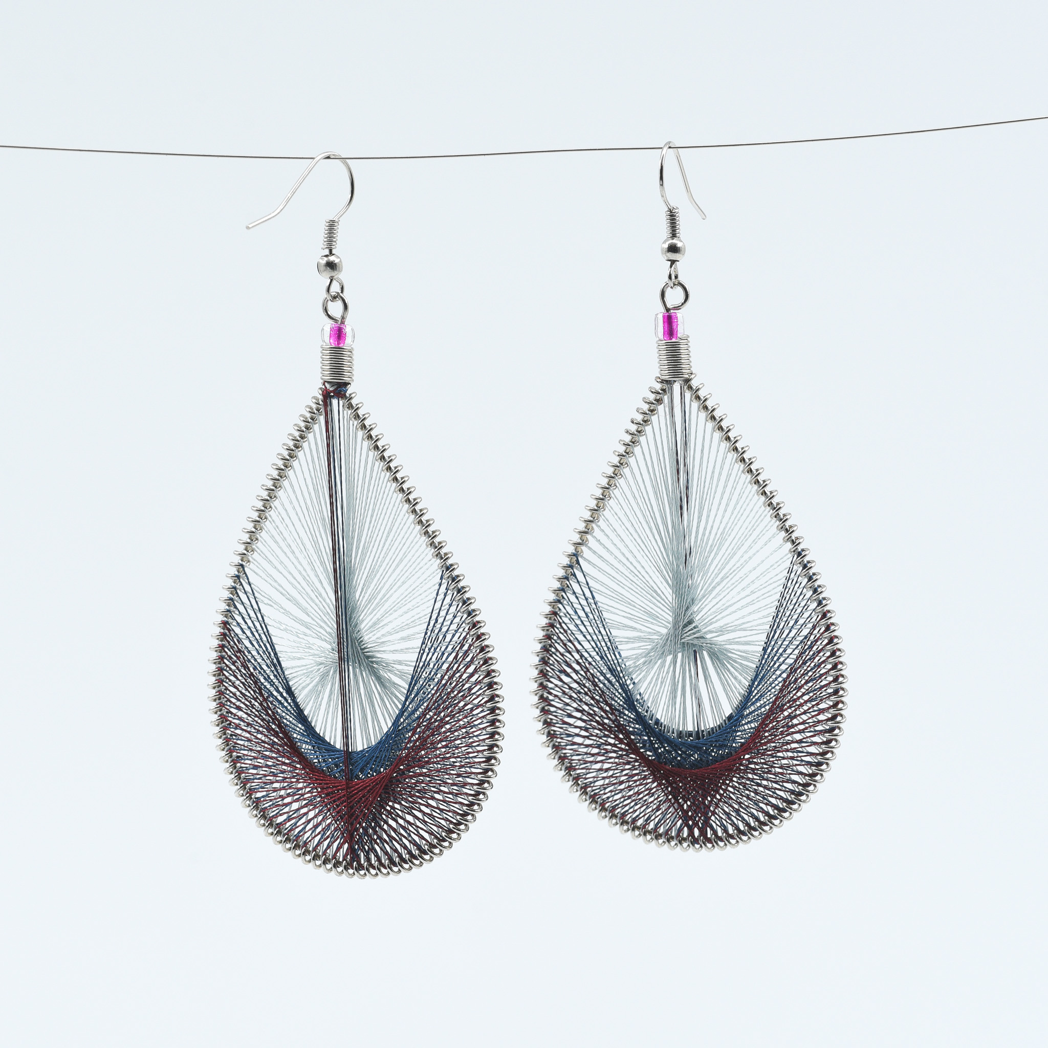 Deep silver and plum hues spiral together to create a cosmic feel in this elegant pair. Perfect for night outings or statement looks.Features: