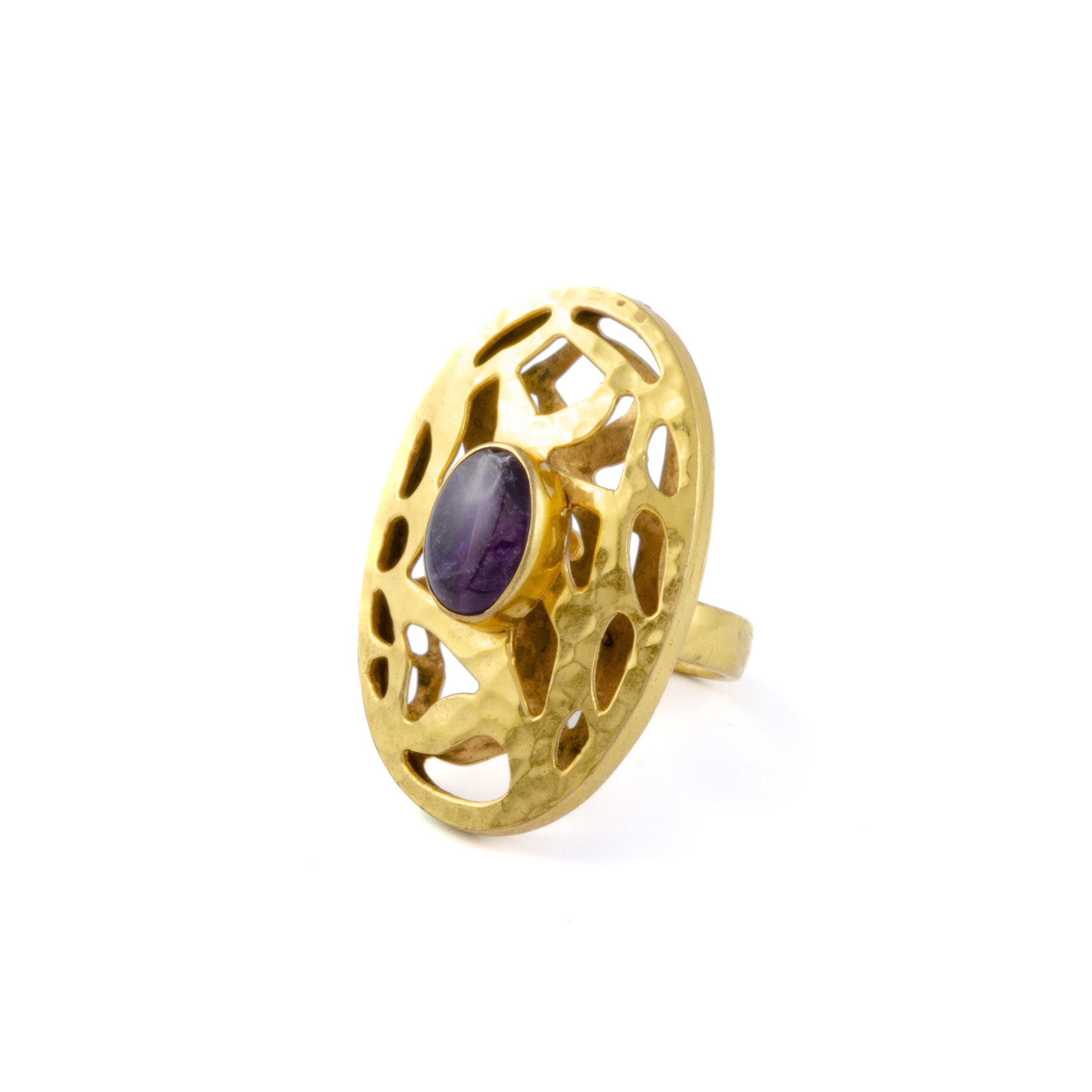 Elevate your jewelry collection with this striking gold-coated brass ring, crowned with a radiant amethyst stone. The rich purple hue of the amethyst contrasts beautifully with the warm gold finish, creating a bold yet sophisticated statement piece.