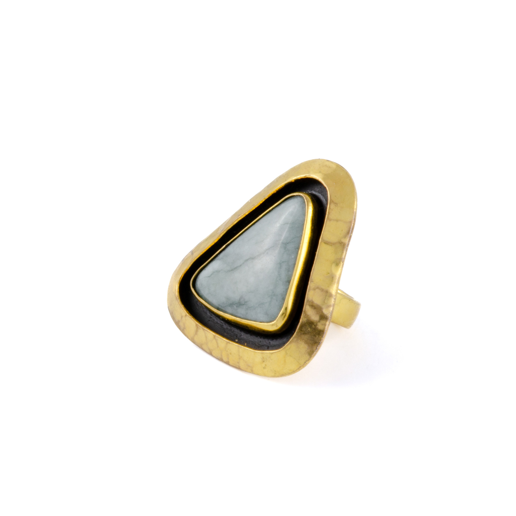 Channel bold, earthy energy with this unique gold-coated brass ring, featuring a captivating jaguar jade stone. With its rich, mottled green tones and natural texture, jaguar jade brings a raw, untamed beauty that pairs perfectly with the warm gleam of gold.