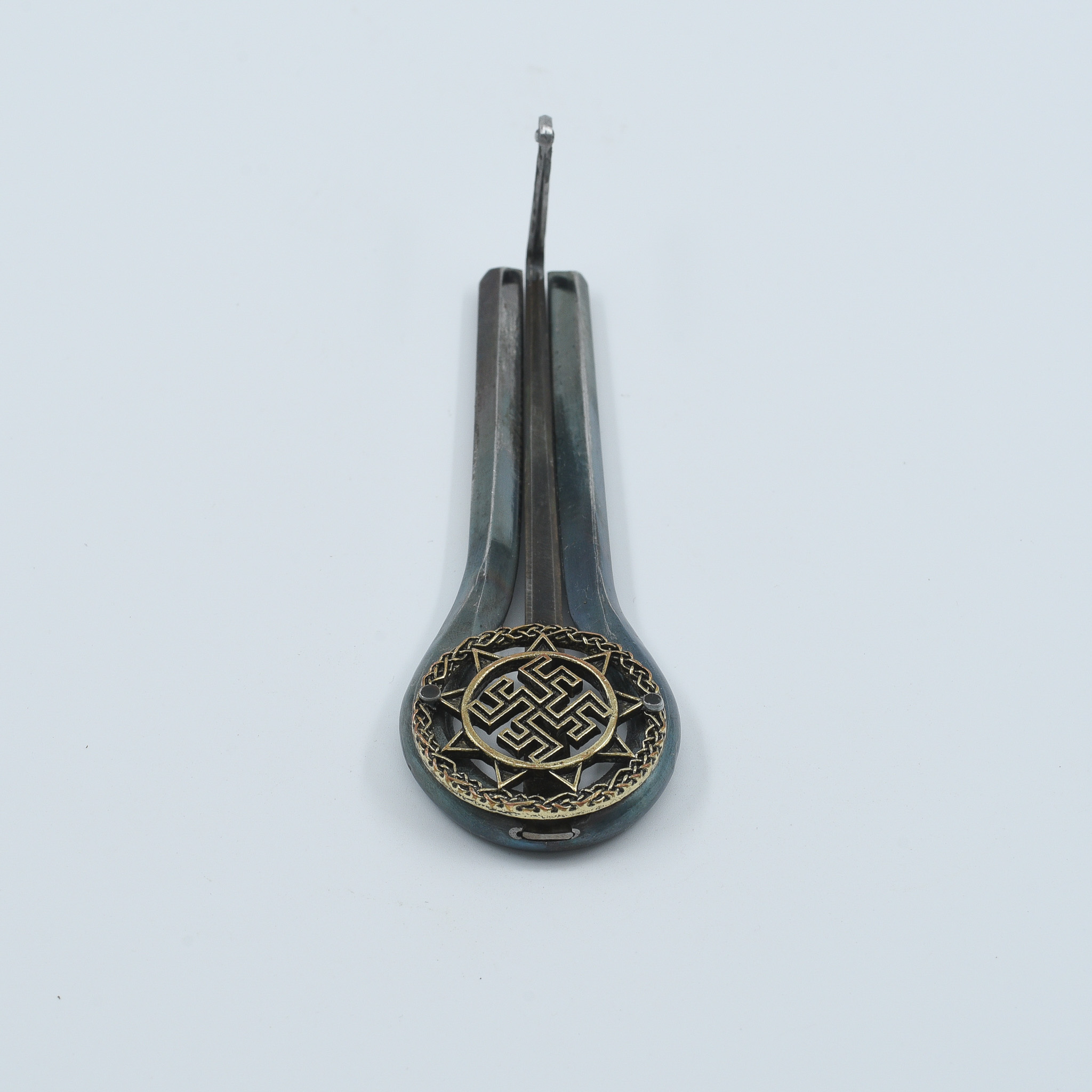 Experience the clear, resonant tone of this handcrafted jaw harp tuned to A2, offering a balanced and vibrant sound with excellent sustain. Forged from high-quality steel, this instrument combines precision craftsmanship with a touch of sacred symbolism.