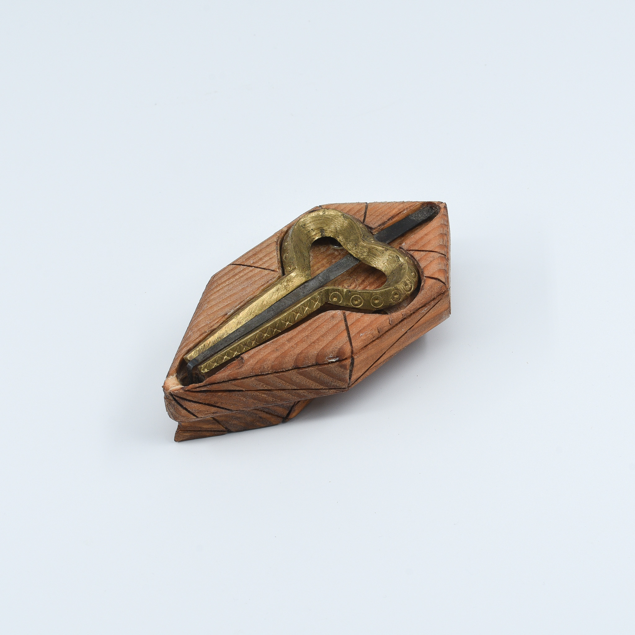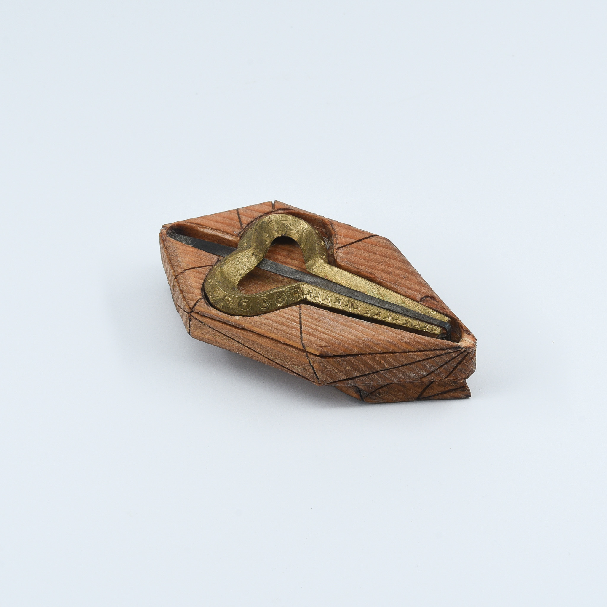 The “Heart of the Forge” is a stunning handcrafted brass jaw harp, paired with an equally unique custom-made wooden case. Every curve and cut in this set speaks of dedication, symbolism, and artistic precision.