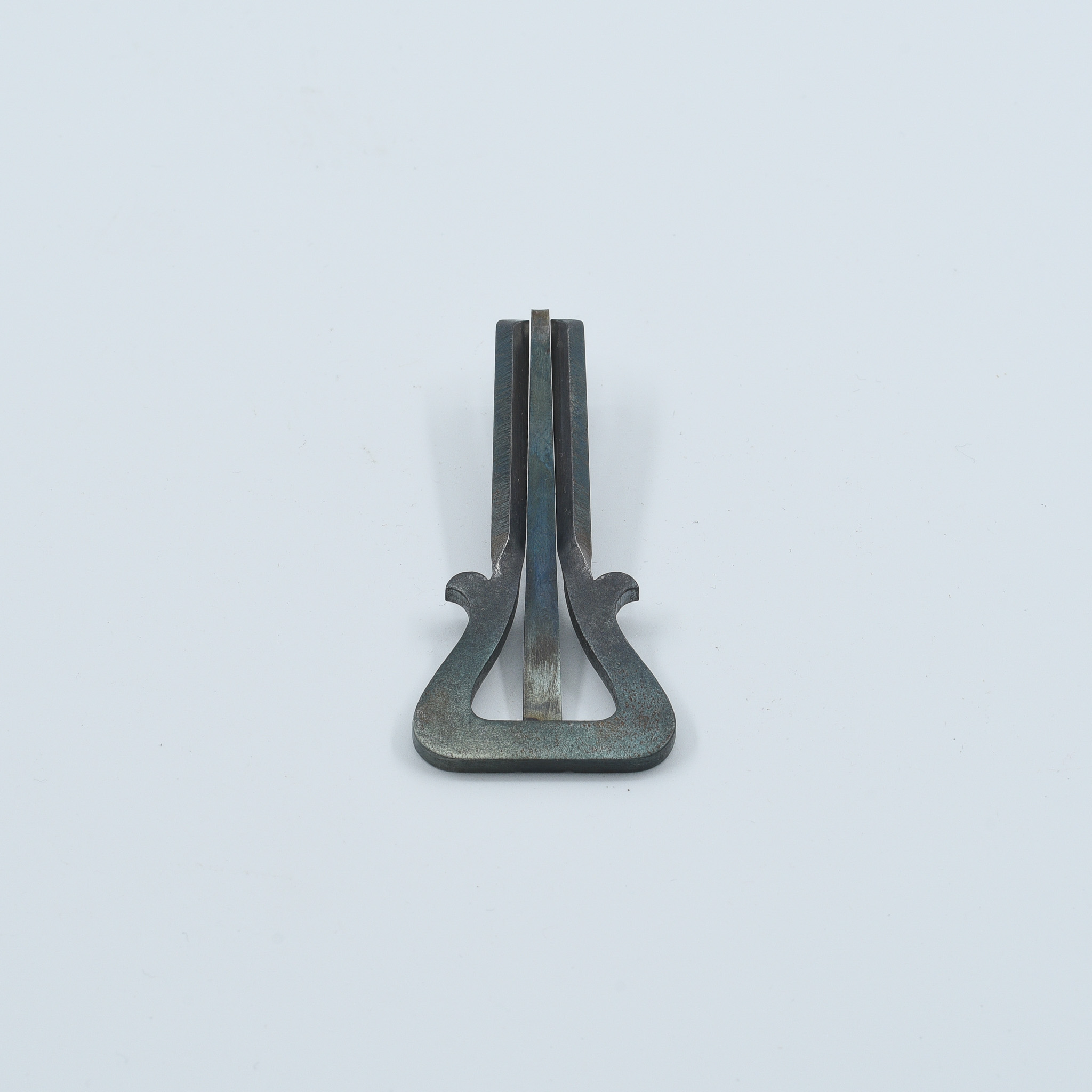 The “Iron Blossom” is a beautifully shaped, hand-forged steel jaw harp that merges raw metalwork with refined design. Its distinct flared frame — resembling the unfolding petals of a flower — gives this instrument both visual grace and structural balance.