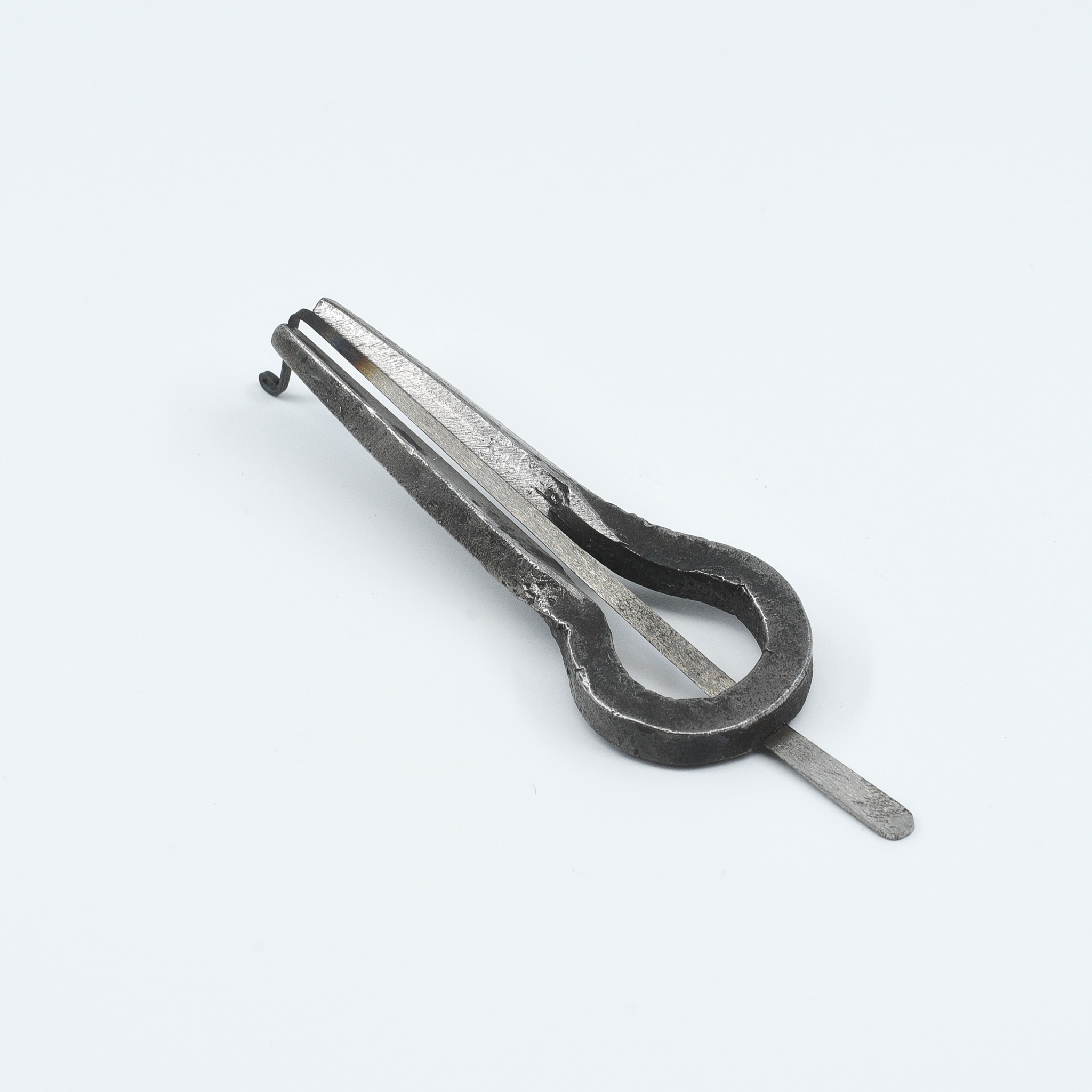 Hand-forged French jaw harp with a raw, elemental spirit. Its hammered steel body and wide frame create a steady resonance that feels grounded yet alive. Every vibration carries the subtle energy of the forge — deep, meditative, and precise.