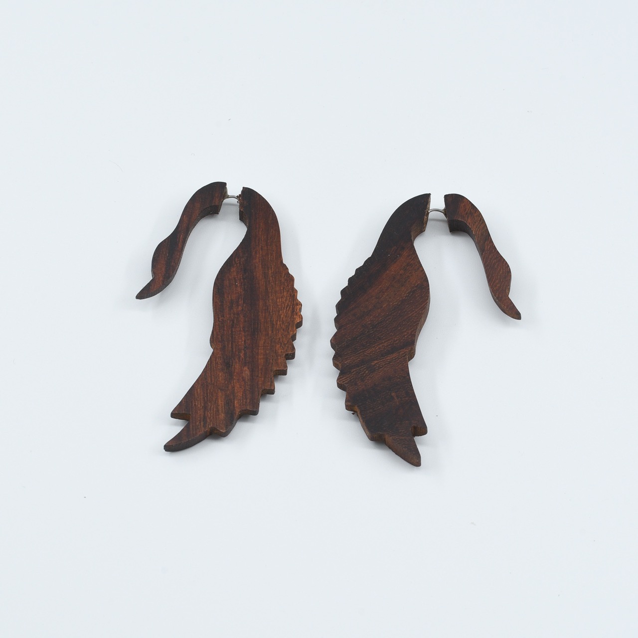 Delicately shaped like elongated leaves or feathers, this pair exudes grace and movement. Hand-carved with detailed vein-like texture, these earrings resemble falling leaves in the wind. Their gentle curve and organic silhouette make them ideal for nature lovers or those inspired by forest spirits and the elegance of earth’s seasonal rhythms. The soft matte finish adds to their natural charm.