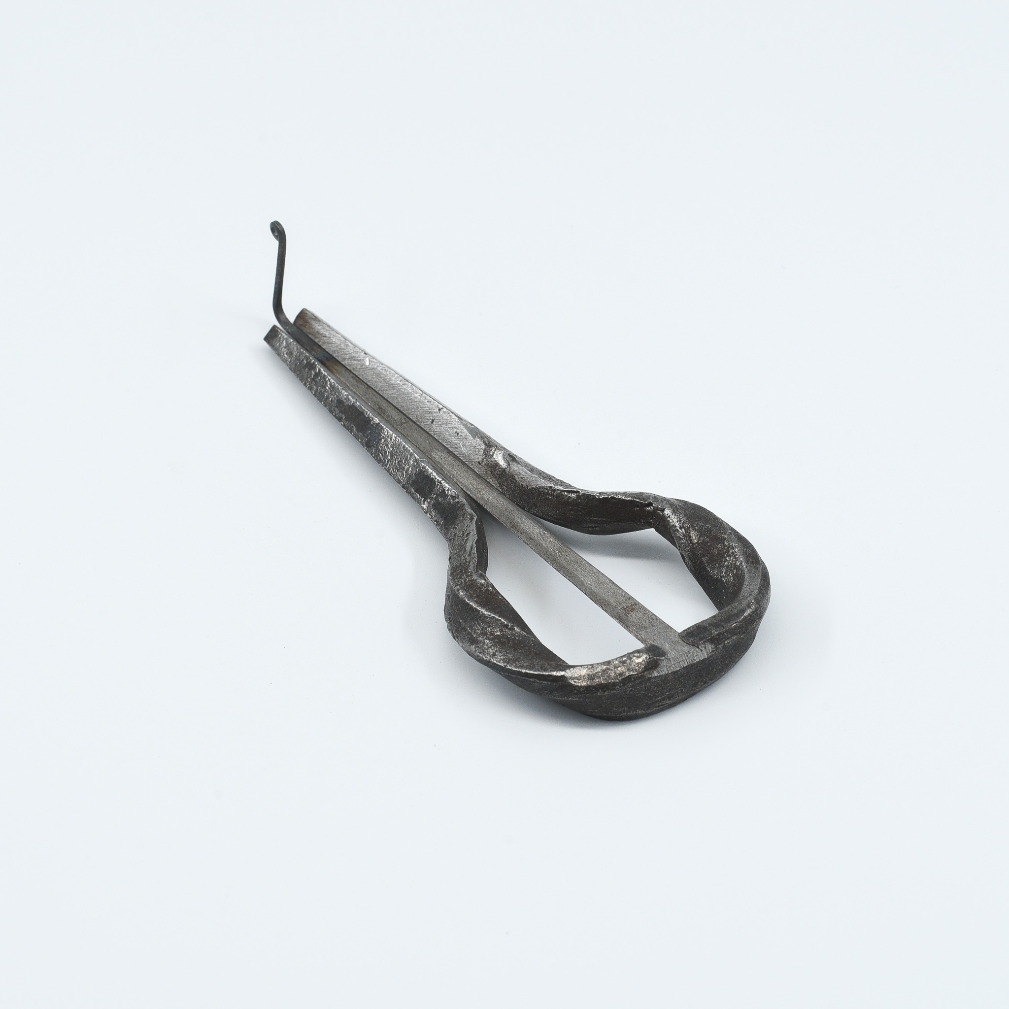 Forged in raw steel, this French jaw harp carries a dark, elemental energy. Its hand-shaped body and weighty frame create a deep, earthy voice that speaks from within the metal itself. A harp of gravity and power, for players who seek depth over delicacy.
