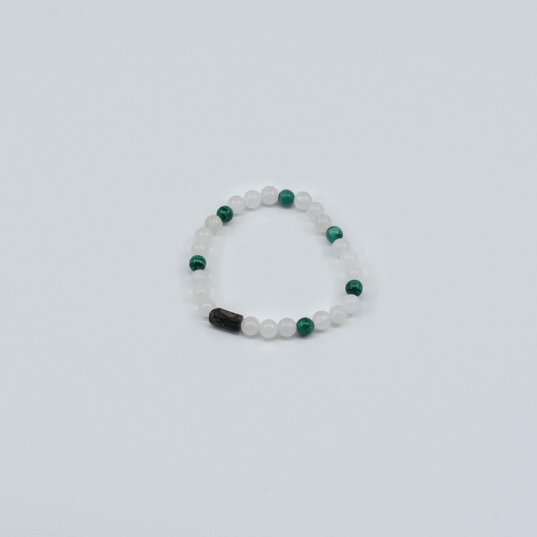 A harmonious blend of malachite and white jade, combining the grounding power of the earth with the serene purity of light.