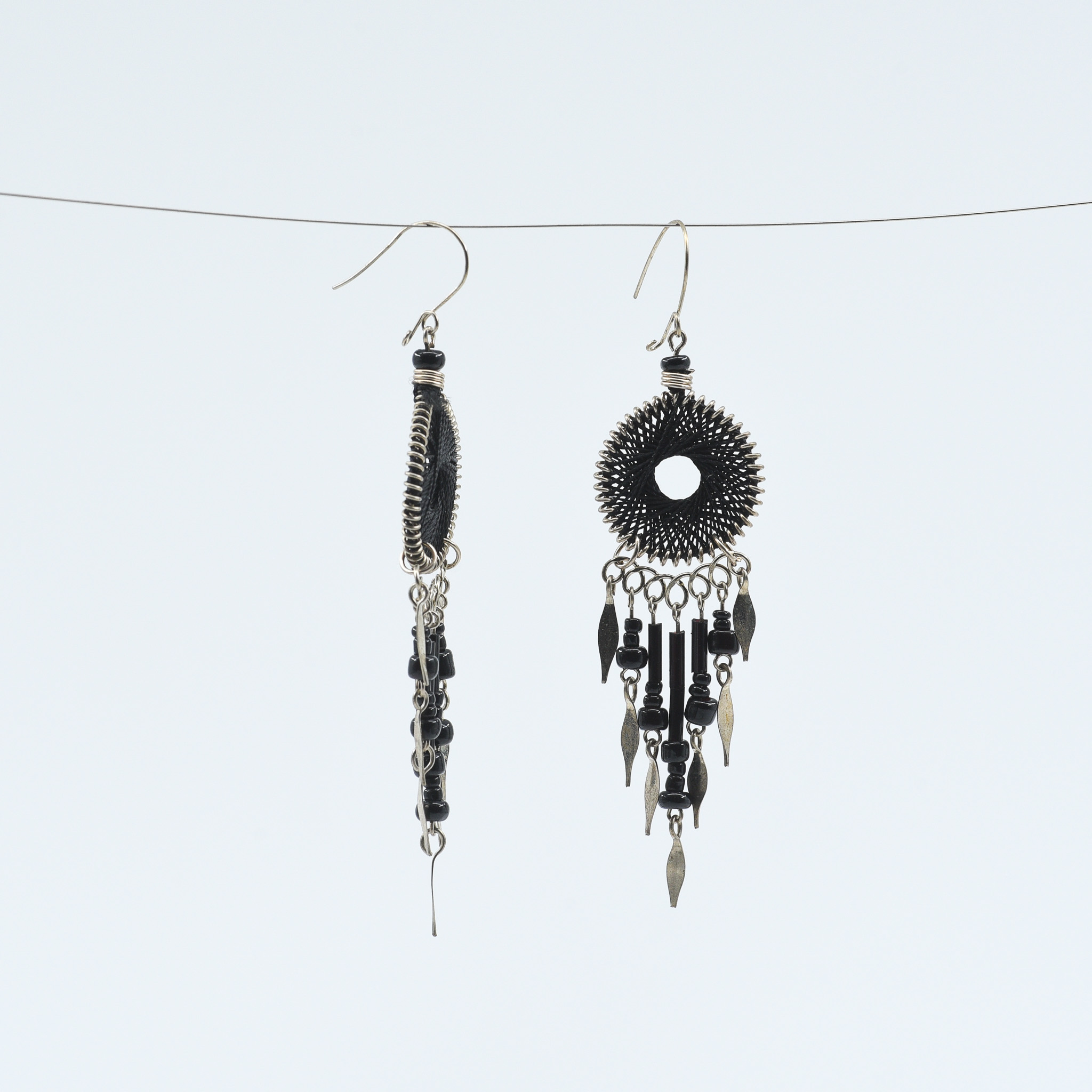 Medianoche – Sleek and powerful, these black and silver earrings represent mystery and elegance. Perfect for evening wear or a bold daytime statement.