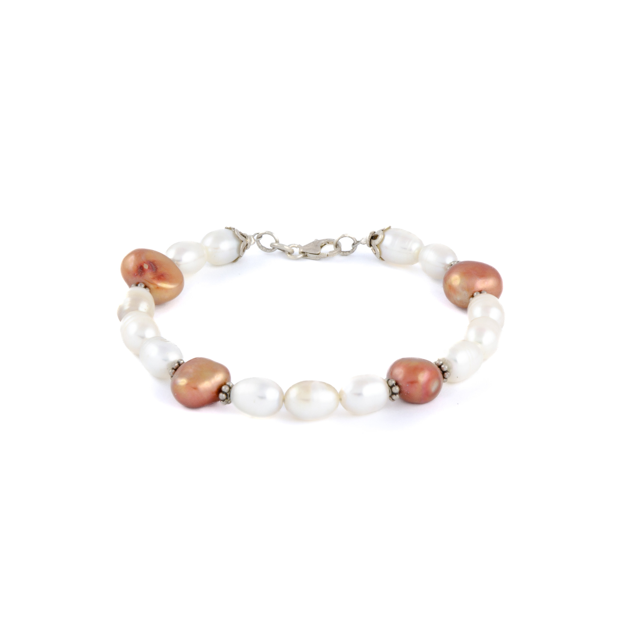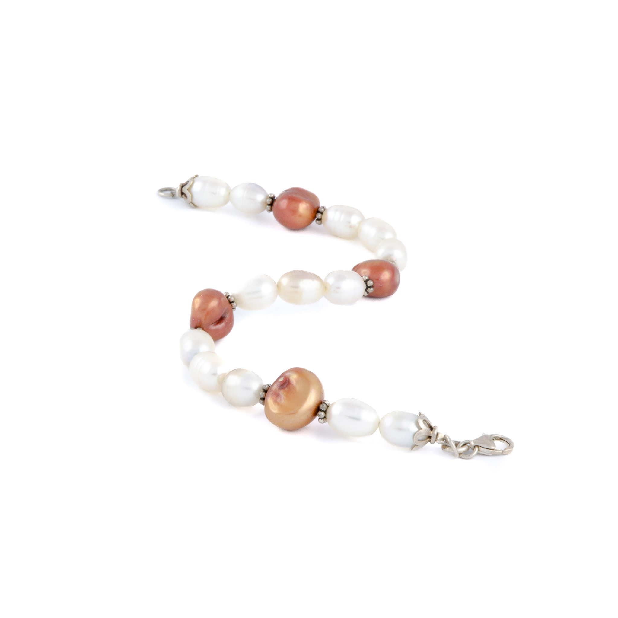 Graceful and timeless, this mixed pearl bracelet brings together the elegance of classic white pearls alternating with the bronze pearls. Each hand-selected pearl offers a soft luster and smooth surface, creating a harmonious blend of traditional and modern sophistication.