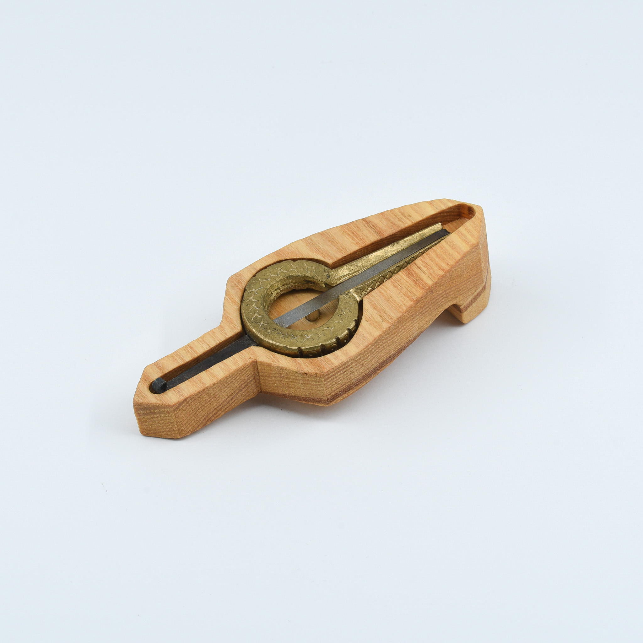 Hand-carved wooden case with natural finish and tight fit