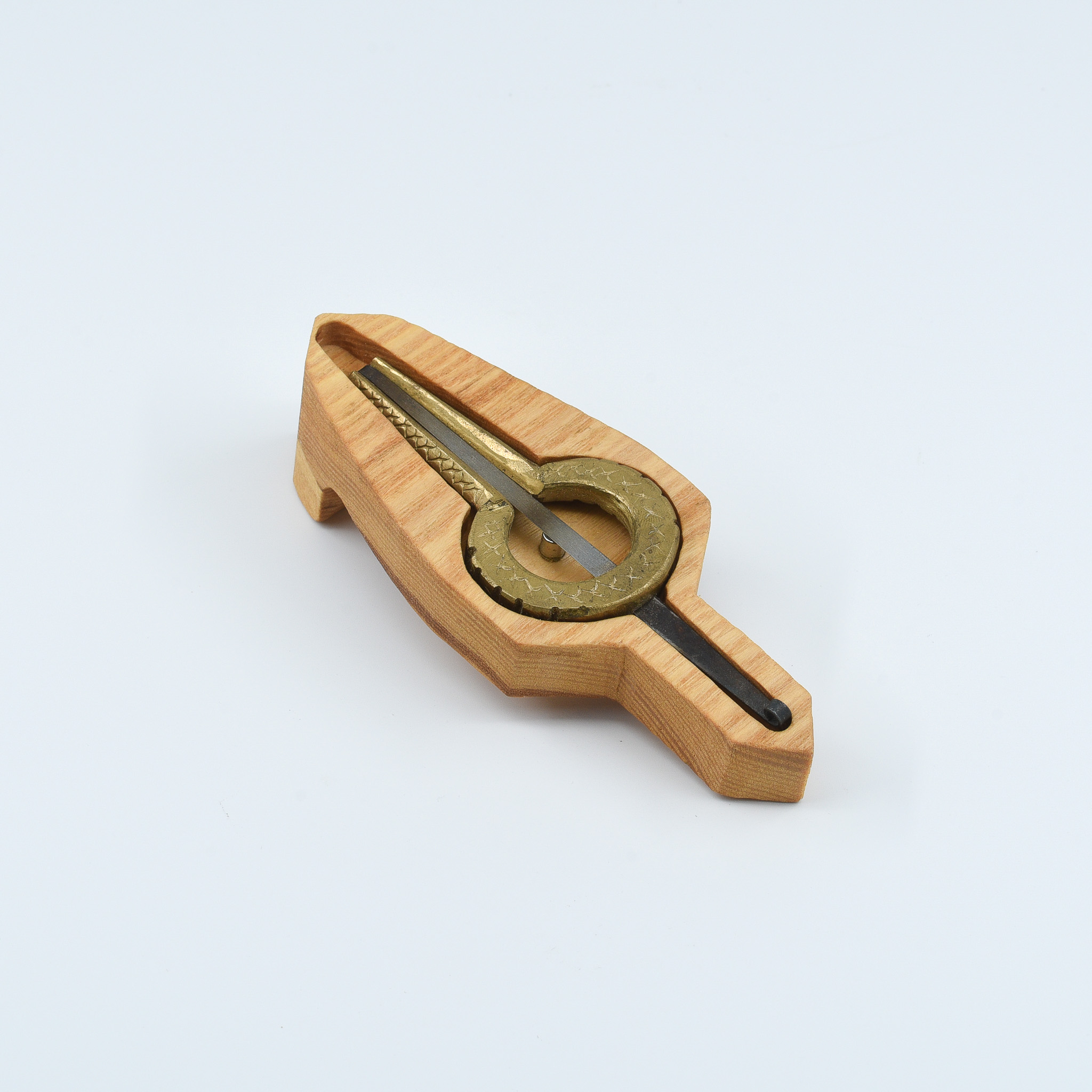 The “Mountain Circle” is a truly special piece — both the jaw harp and its case are entirely handcrafted, each detail shaped with care and intention. The harp features a solid brass frame with a rugged, circular design inspired by mountain stones and ancient sun symbols, symbolizing unity and strength.