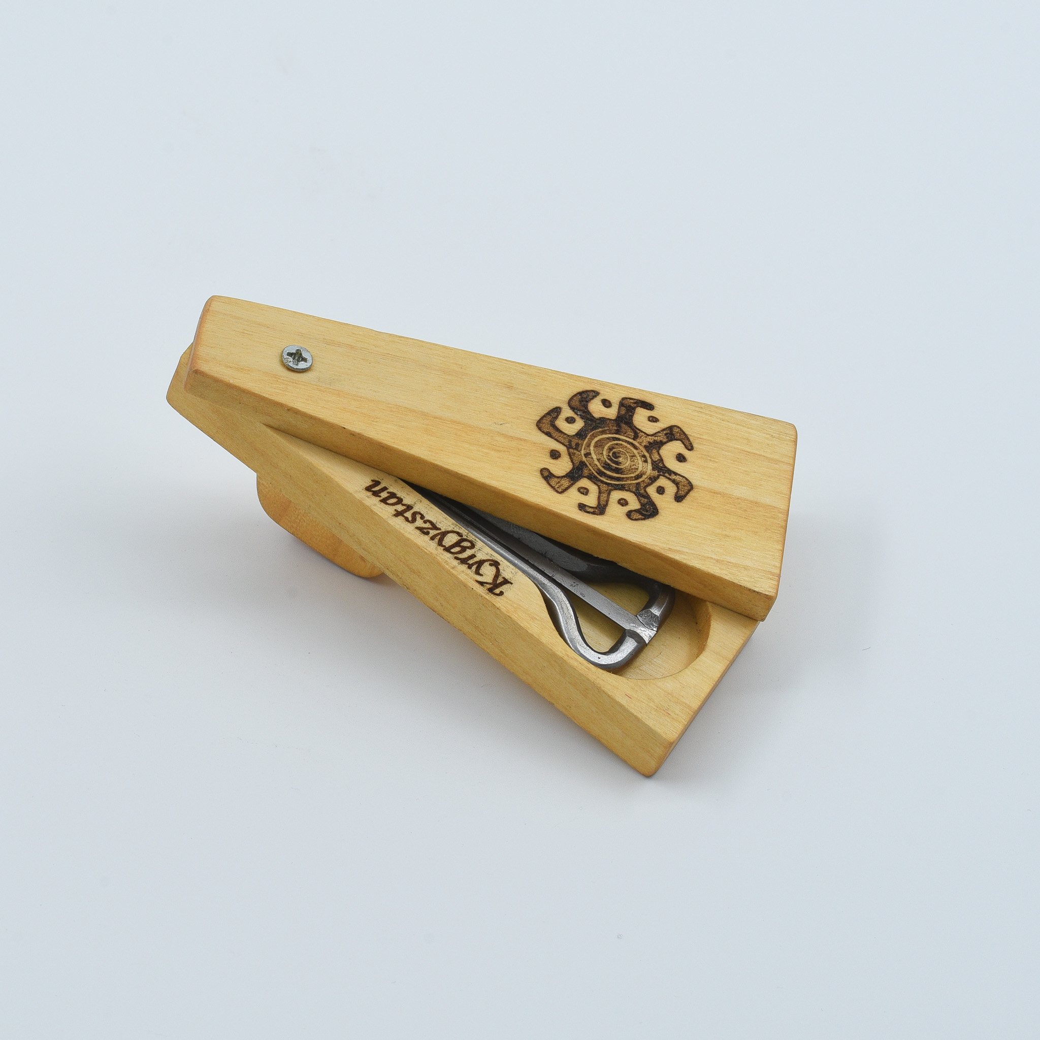 The “Nomad Spirit” is an authentic Kyrgyz-style jaw harp (temir komuz) crafted in the traditional Central Asian form, blending cultural heritage with precise modern craftsmanship. Handmade from durable polished steel and housed in a beautifully carved birchwood case, this instrument embodies the deep connection between music, nature, and the wandering soul of the steppe.
