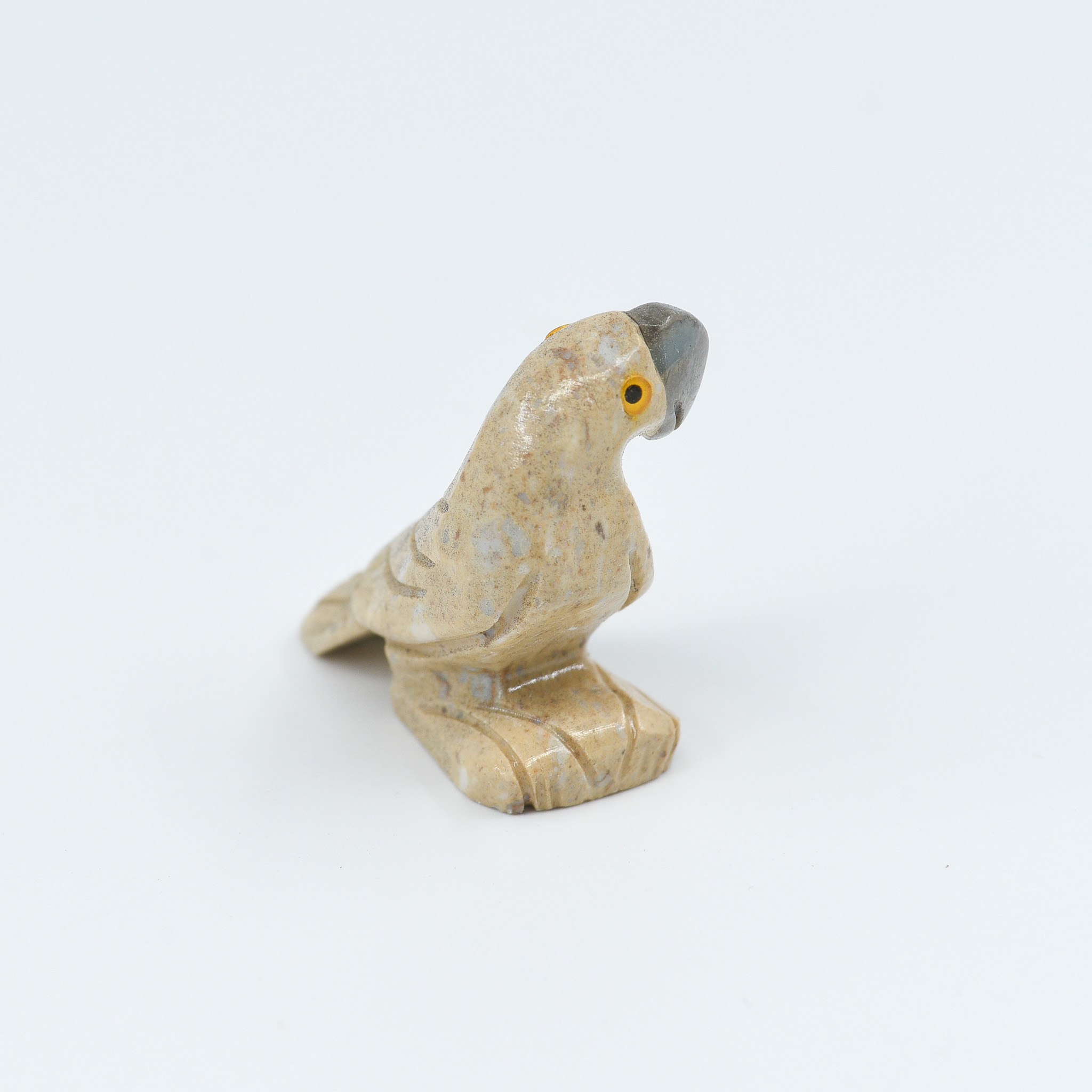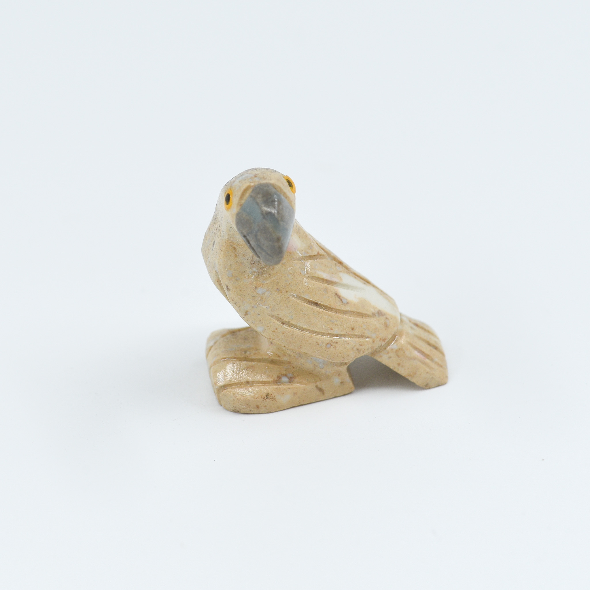 Hand-carved gemstone parrot figurines crafted from natural jasper, showcasing warm earthy colors and fine detailing. Each small parrot represents joy, communication, and self-expression — perfect for bringing a lively, positive energy to any space.
