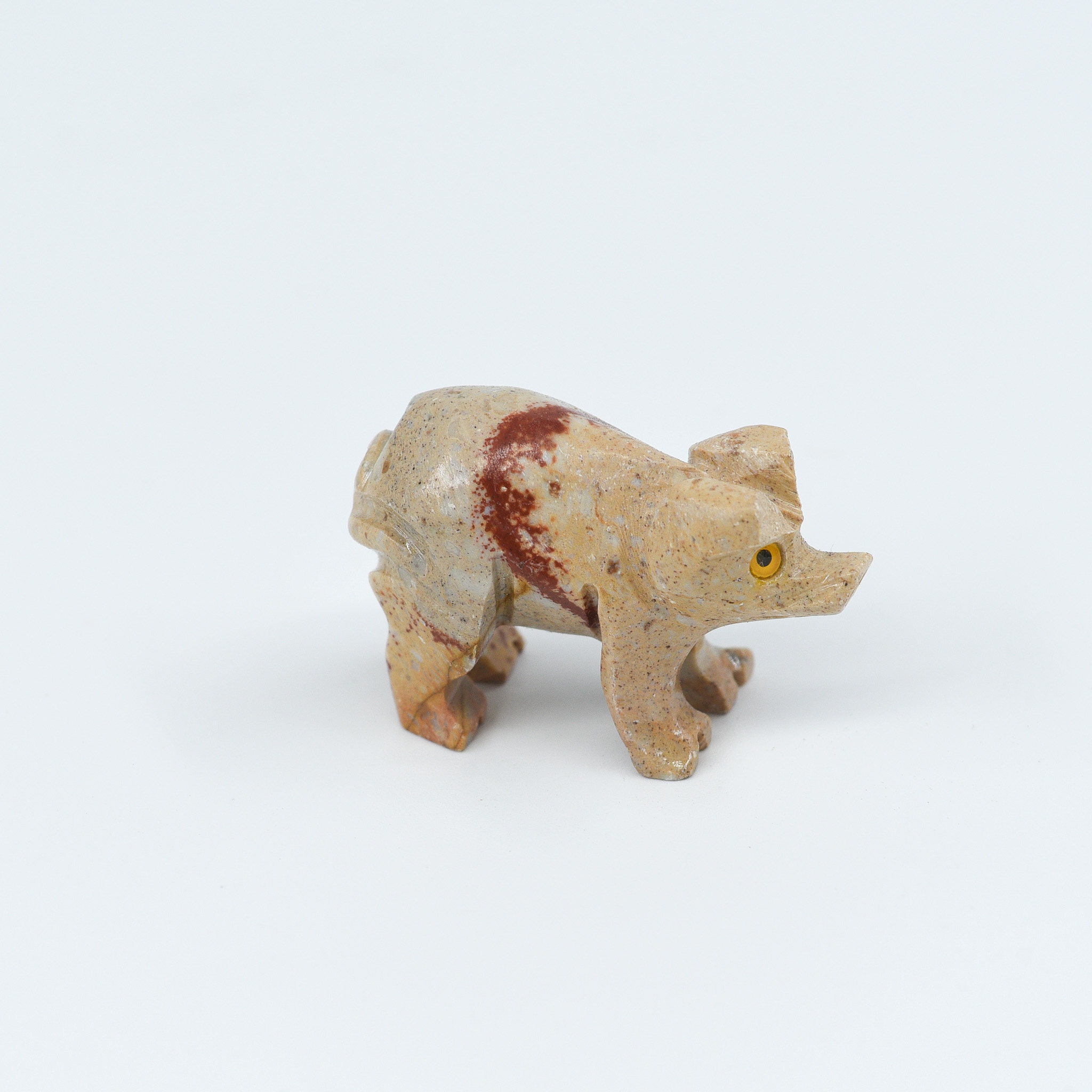 A hand-carved pig figurine made from natural jasper, featuring warm earthy colors and a smooth polished finish. The pig is a traditional symbol of prosperity, abundance, and joy in simple pleasures — reminding us to stay grounded and grateful for life’s comforts.