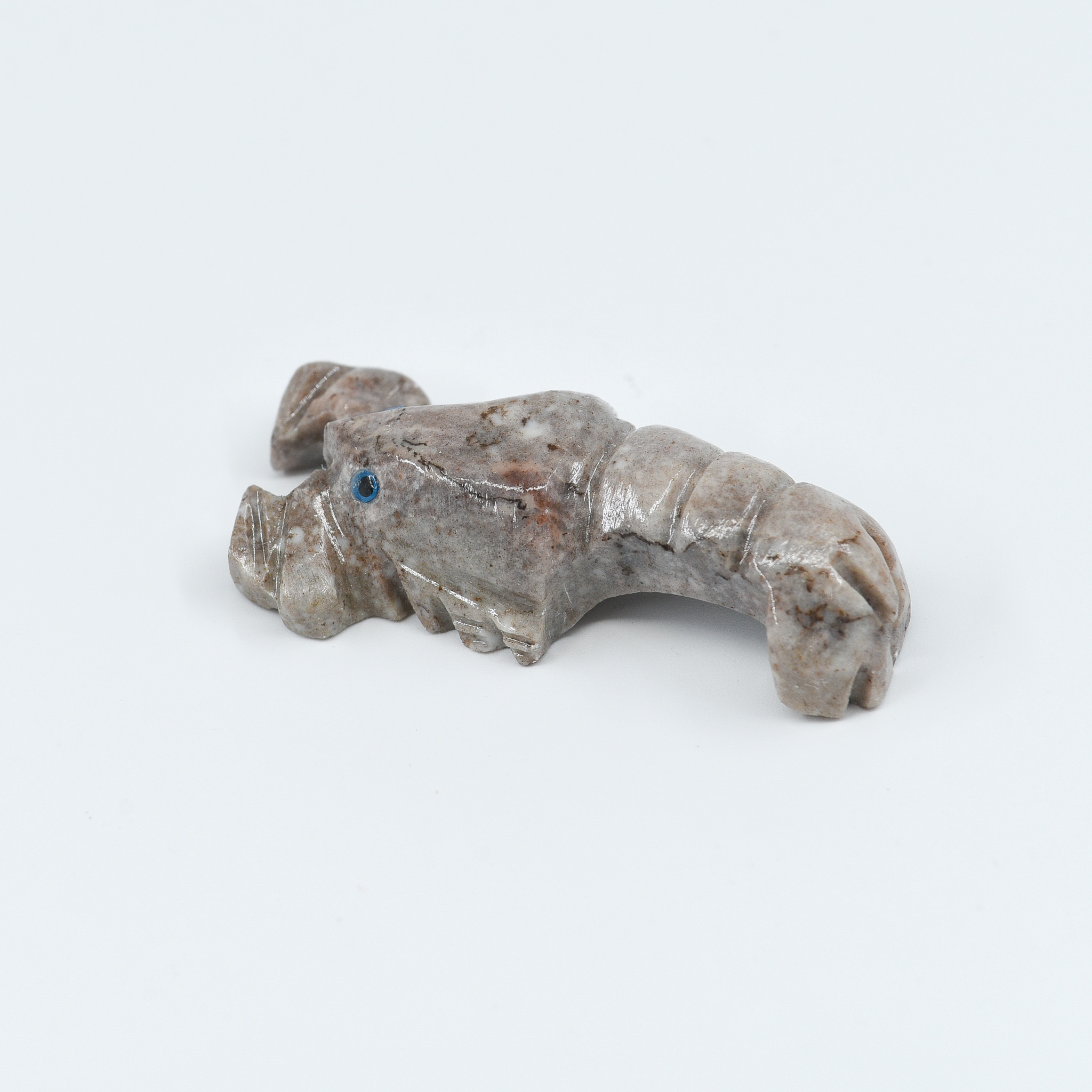 A hand-carved scorpion figurine made from natural jasper, featuring earthy grey tones and fine carved details. The scorpion embodies transformation, strength, and protection, reminding us of inner power and the ability to regenerate after challenges.
