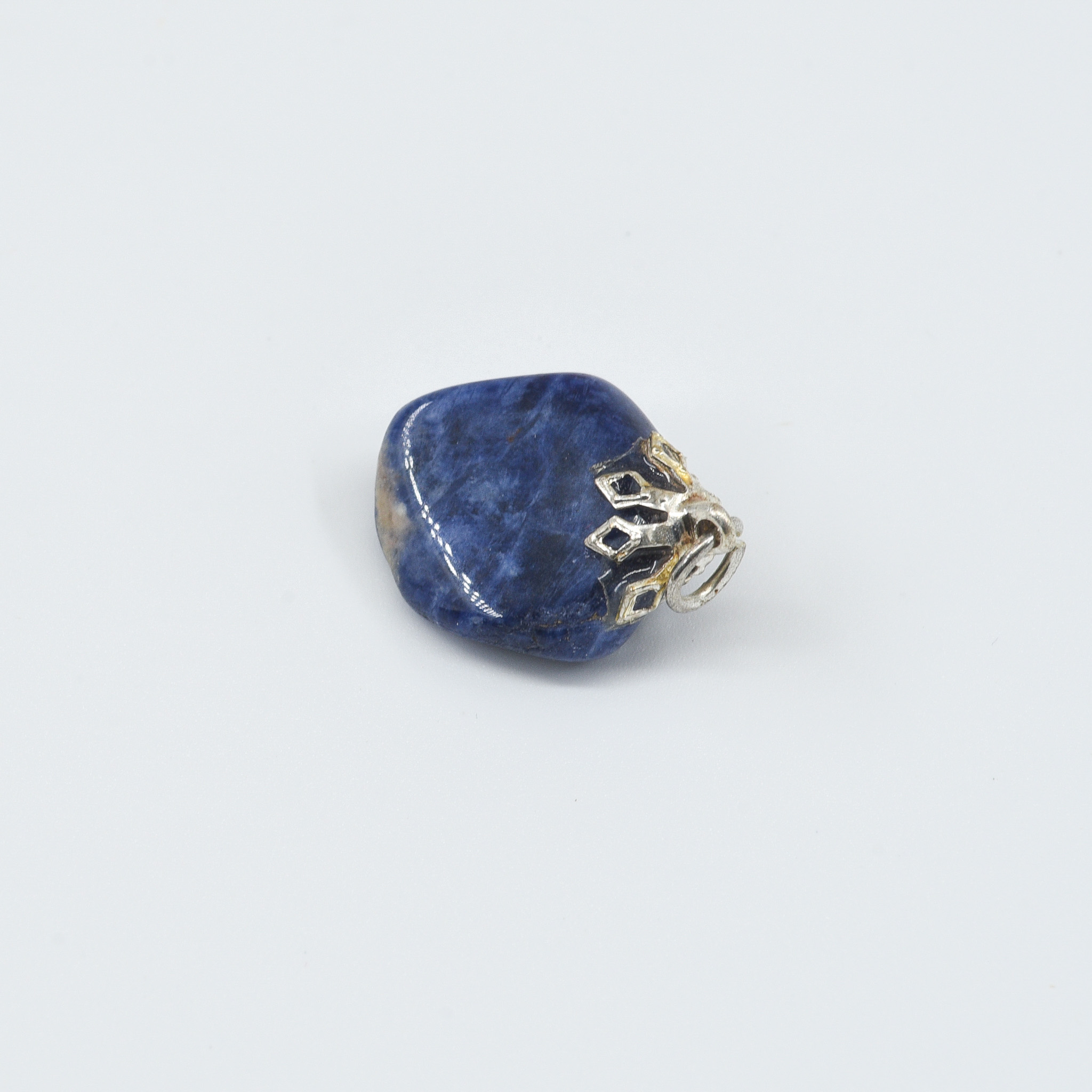 A deep blue Sodalite gemstone pendant with natural white marbling, representing clarity and calmness. This stone is cherished for enhancing intuition, focus, and inner peace.