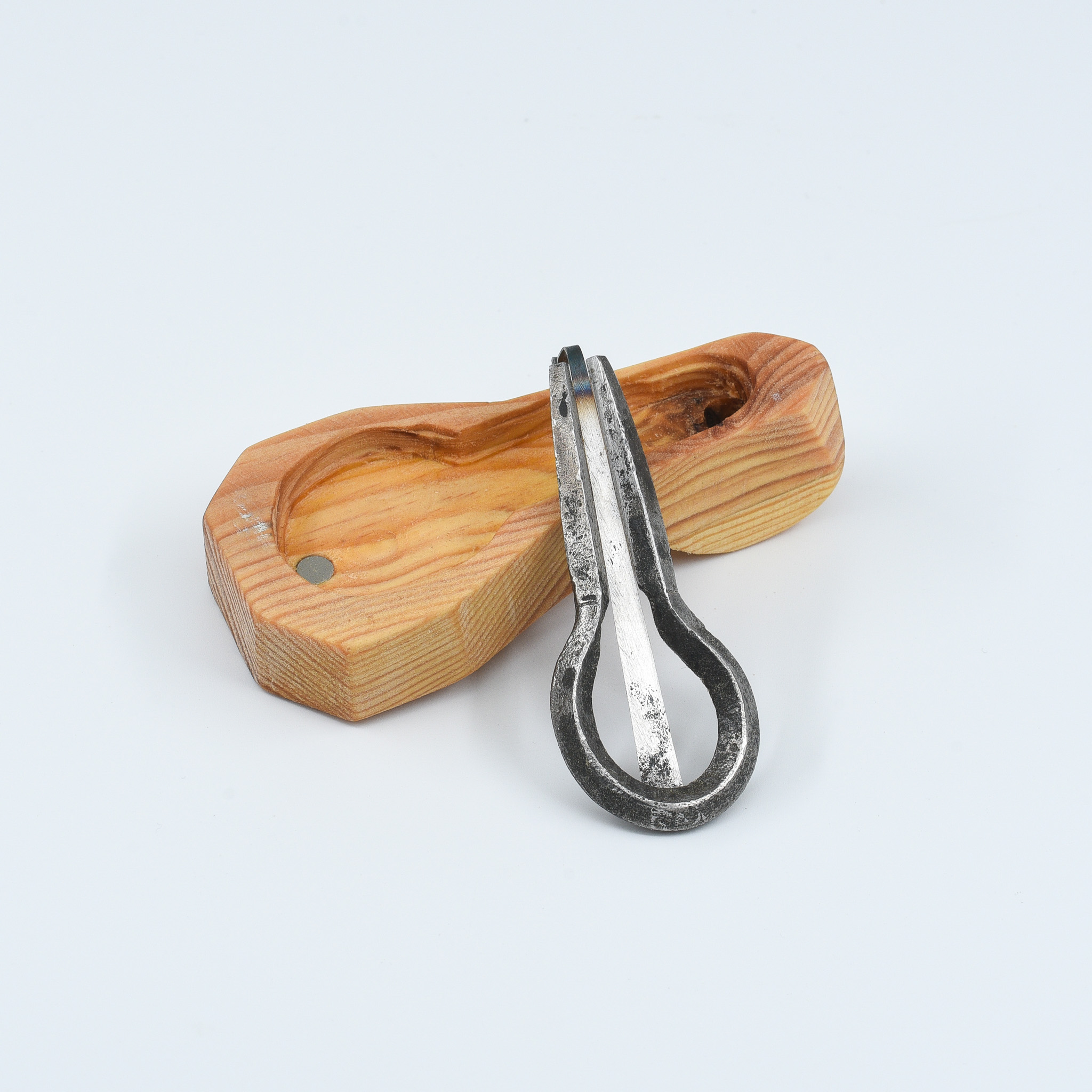 Handcrafted in France, The Balance embodies harmony between form and function. The forged steel frame rests perfectly in a light pinewood body, carved to follow the natural lines of the instrument. Secured by a magnetic neodymium closure, it offers a smooth, effortless feel when handled.