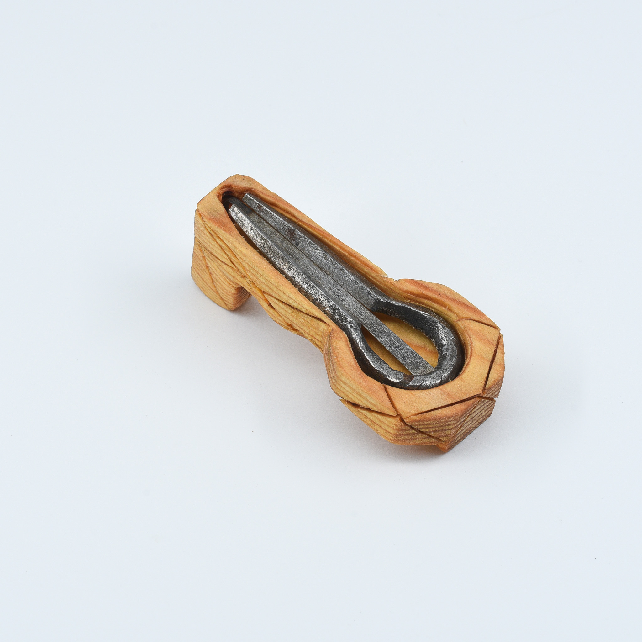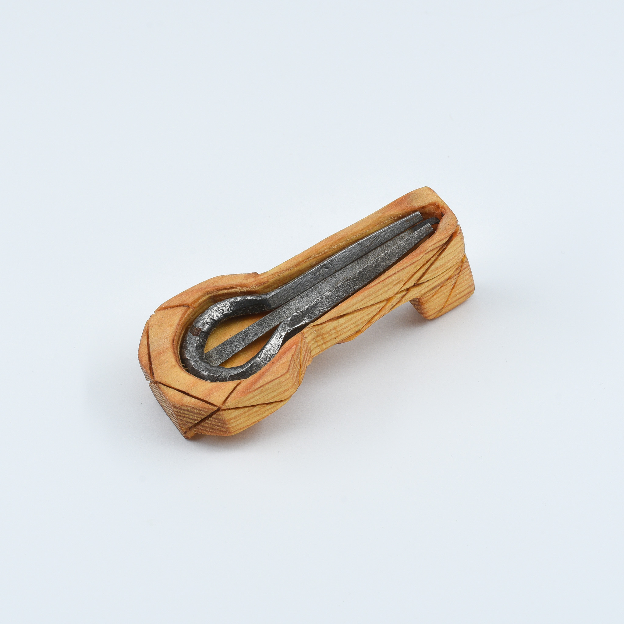 The Golden Pattern stands as a true union of geometry and spirit. The wooden case is adorned with angular, intersecting lines that give it a sculptural, almost sacred presence. Hidden within, a magnetic neodymium closure secures the forged steel doromb with effortless precision.