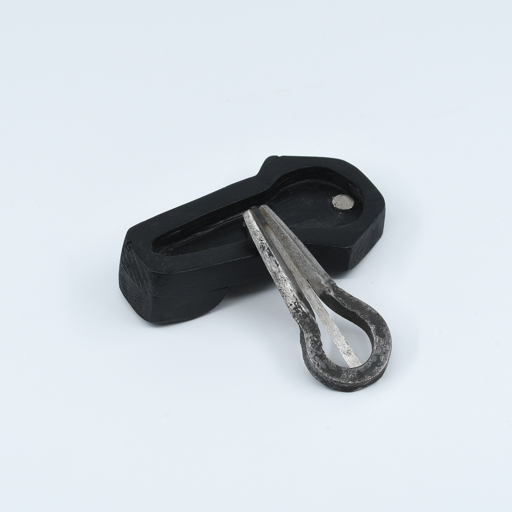 Handcrafted in France by a young artisan, The Obsidian Whisper blends darkness and clarity in perfect harmony. The deep black wooden case has a refined matte finish that enhances the natural texture of the material, while a neodymium magnetic closure secures the forged steel doromb with precision and ease.