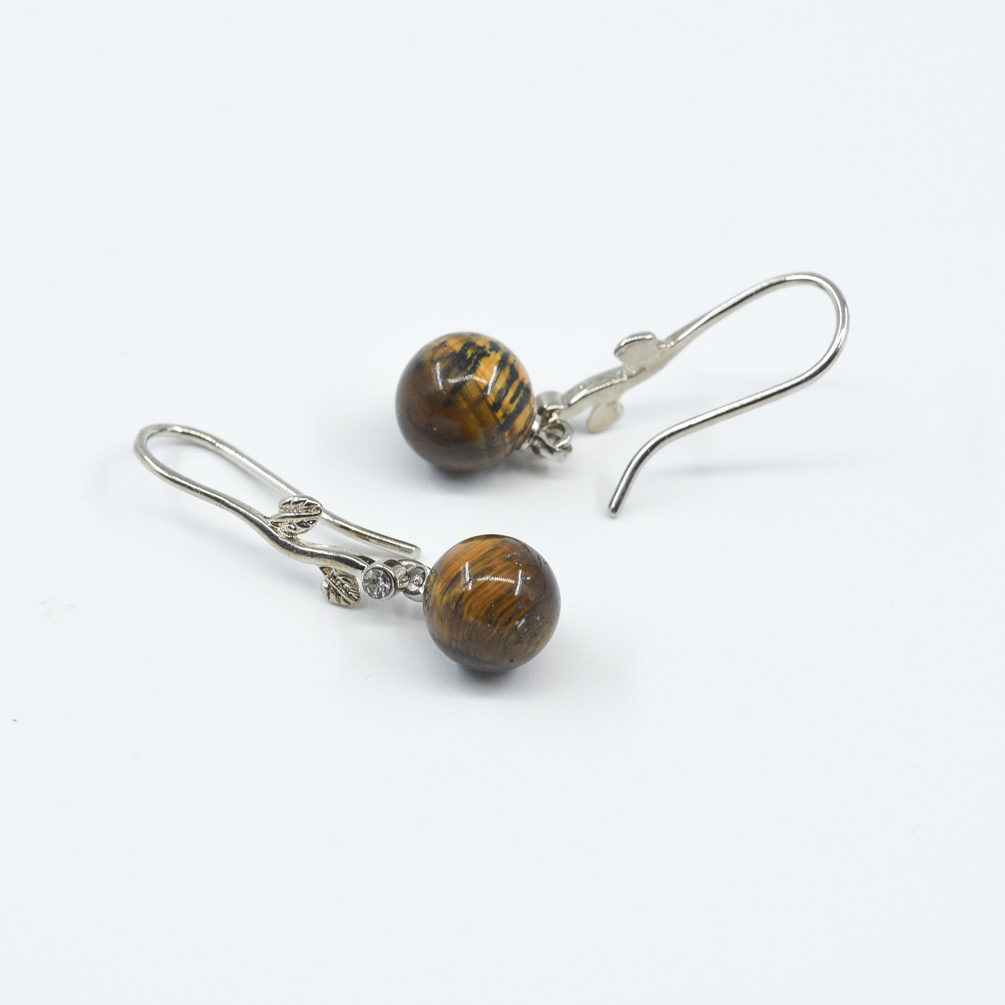 Striking earrings featuring natural Tiger Eye gemstones. Their golden-brown shimmer and unique light reflection (chatoyancy) create a captivating, warm glow that symbolizes courage and protection.