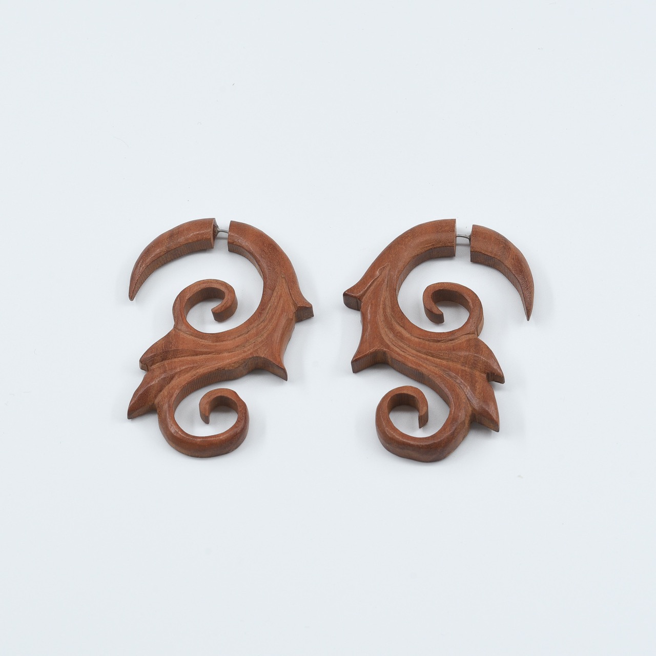 These flame-like spirals with carved edges represent dynamic energy and spiritual fire. Inspired by tribal motifs, the swirling central form is enhanced by gentle ridges and a slightly asymmetrical shape, giving each piece a handmade authenticity. This pair is bold, expressive, and meant to be worn as a statement – for ceremonies, festivals, or any occasion that calls for power and personality.