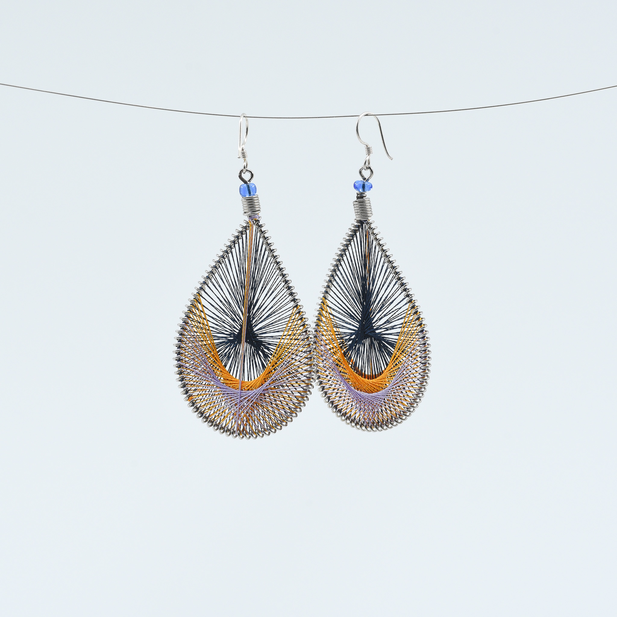 Bold triangles of deep blue and golden orange form a geometric contrast in this vivid pair. An artistic fusion of Guatemalan culture and contemporary aesthetics.